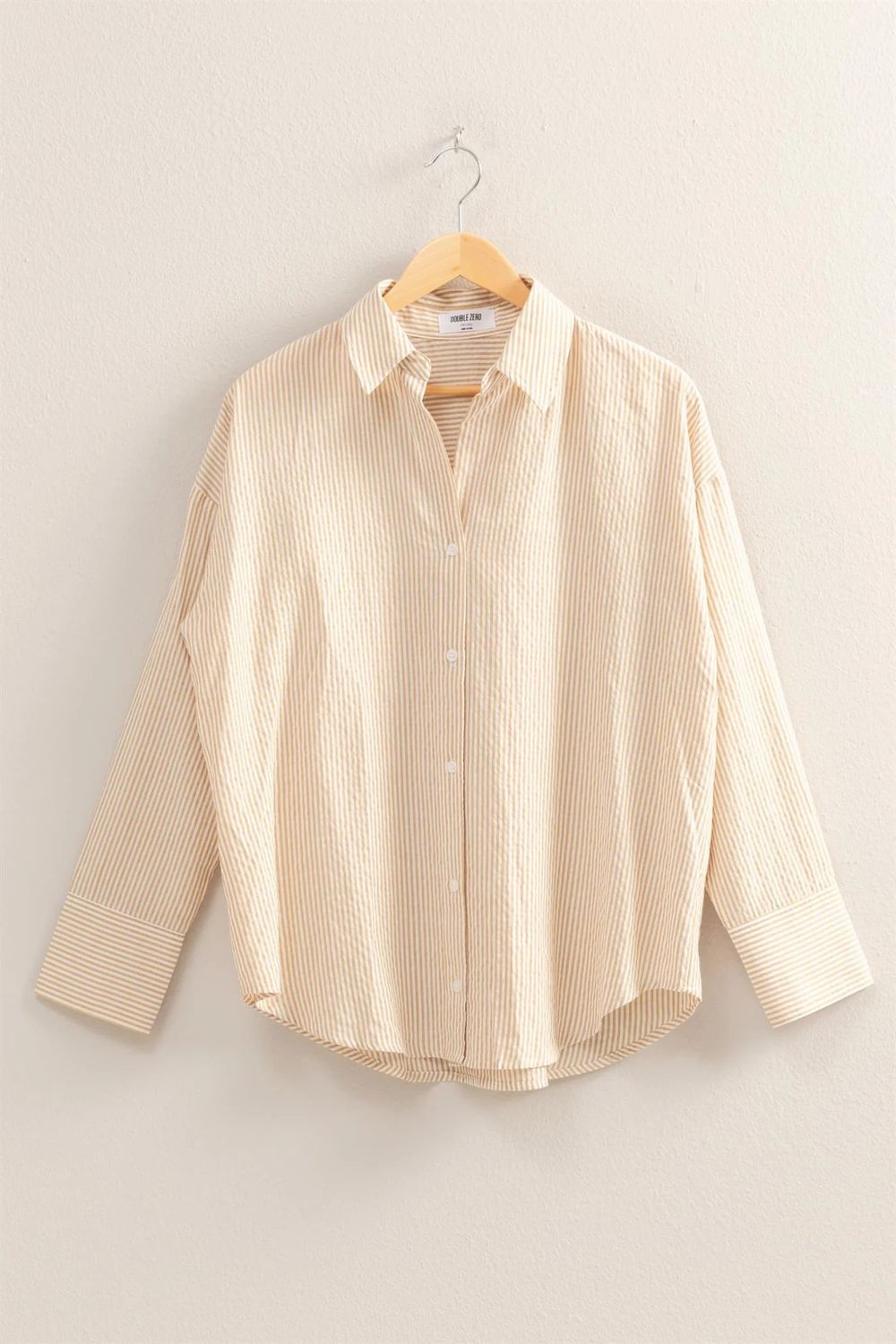 Head On To Your Next Work Meeting Wearing This Classic Shirt. Covered In A Striped Print, This Shirt Shapes A Collared Neckline Long Sleeves With Cuffed Hems And A Front Button Placket. The Relaxed Silhouette Is Best Paired With Trousers.